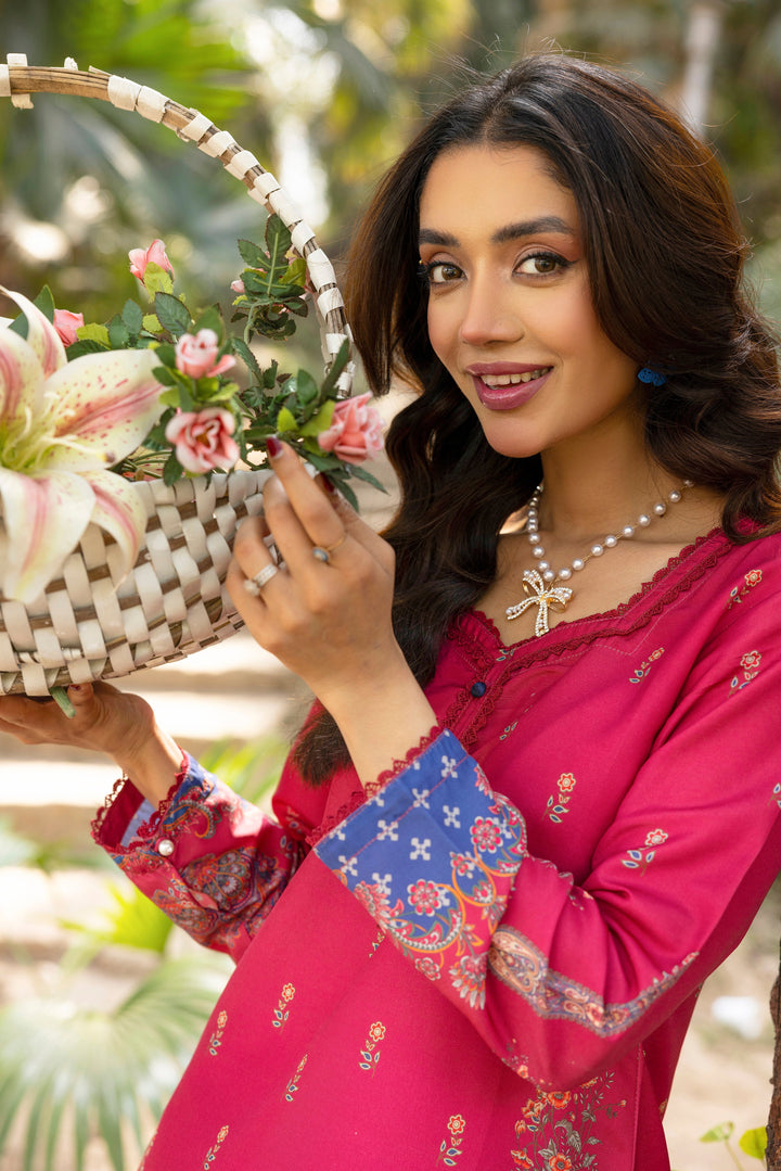 Drape yourself in the richness of Crimson Elegance, a 2-piece stitched ensemble designed for the modern woman who adores timeless fashion. This deep maroon kurta is adorned with delicate gold and blue motifs, offering an exquisite fusion of traditional and contemporary charm. The lace-trimmed neckline and contrasting blue cuffs add a regal touch, making this outfit perfect for an effortless festive or evening look.