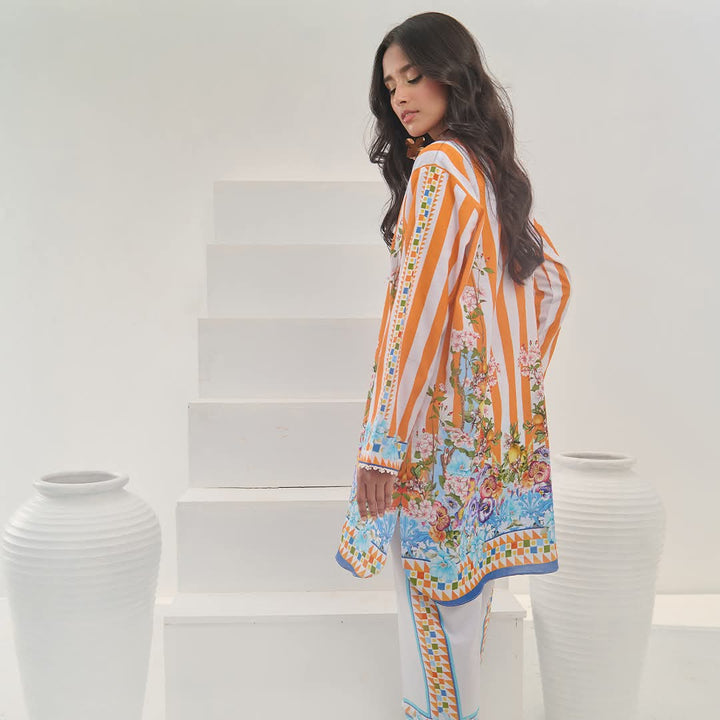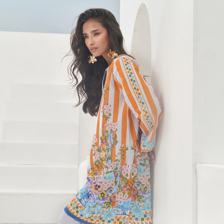 Crafted from premium Swiss Lawn and adorned with digitally printed floral artistry, this outfit is a symbol of pure elegance and comfort. Its soft texture and graceful design make it perfect for both casual gatherings and festive occasions.