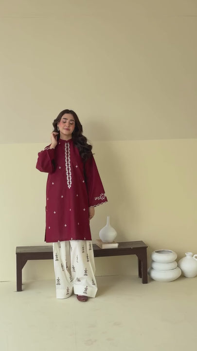 Step into timeless elegance with this beautifully embroidered 2-piece Farshi suit.