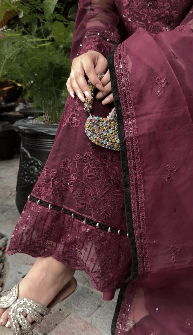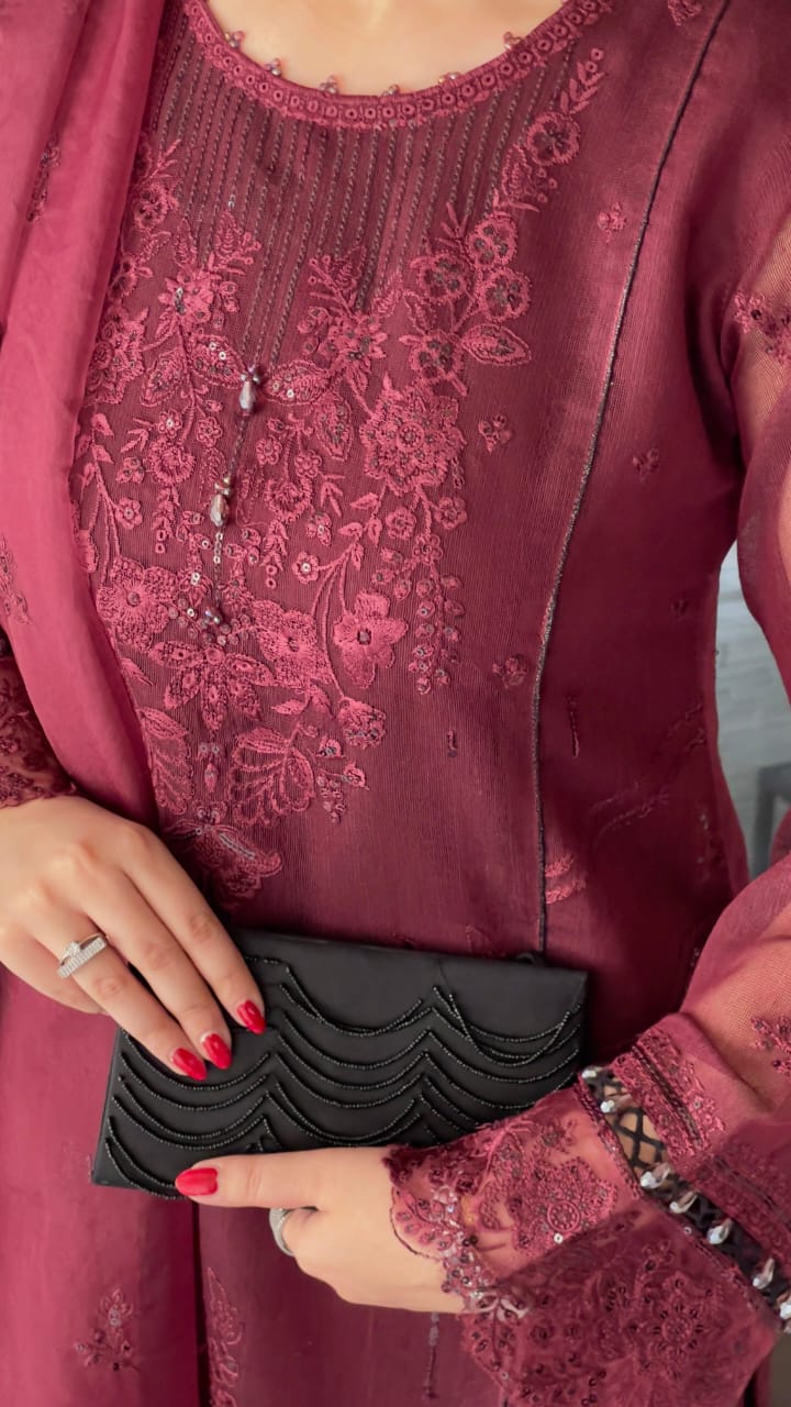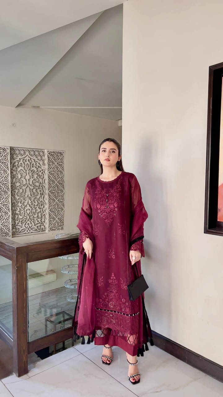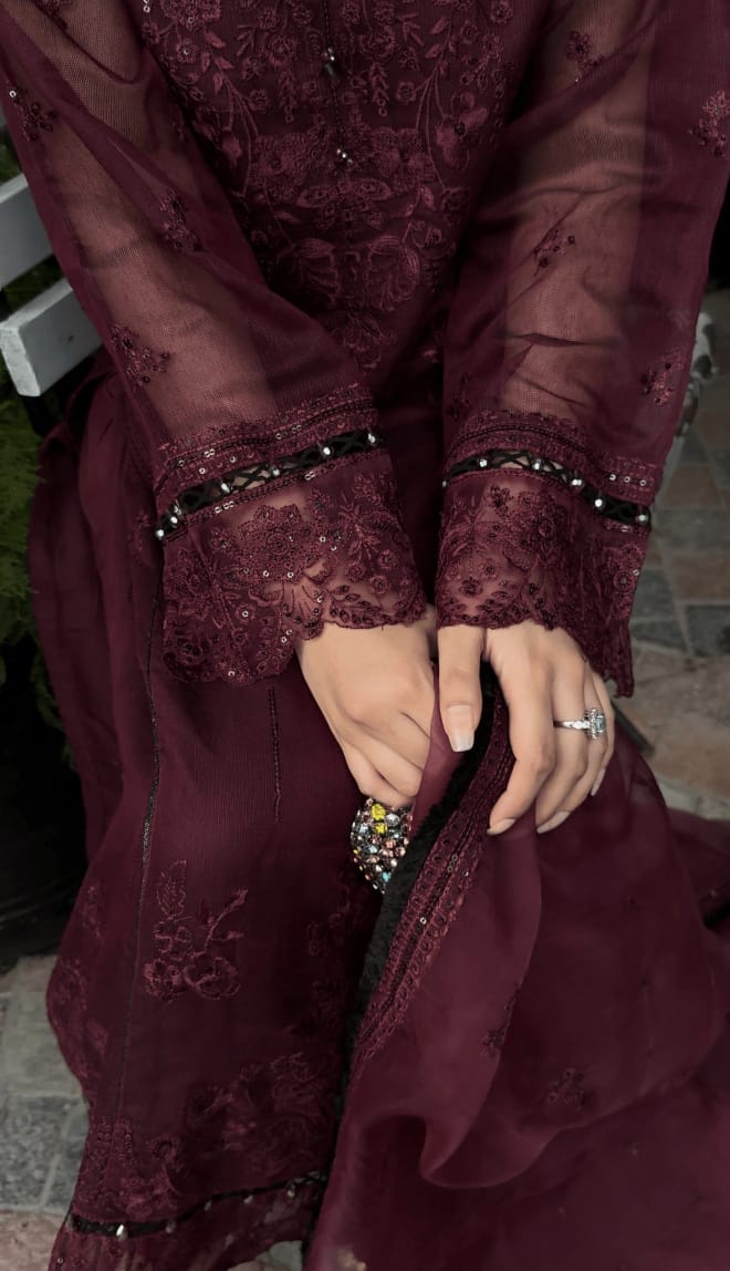 An exquisite 3-piece outfit made from high-quality Khaadi Net fabric.