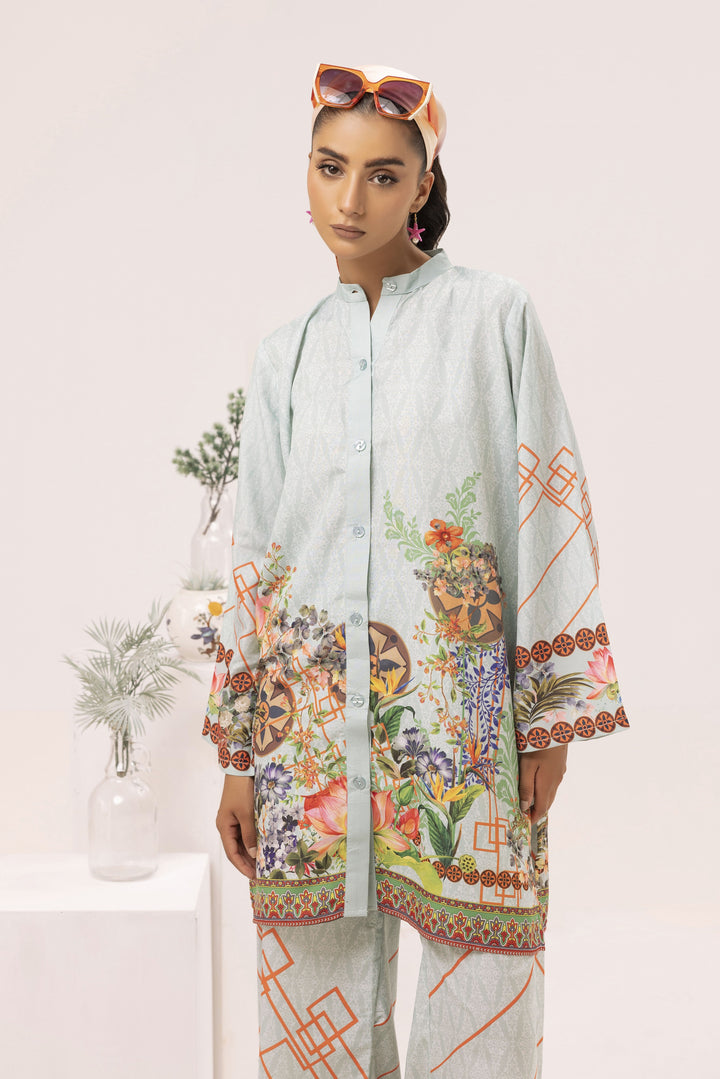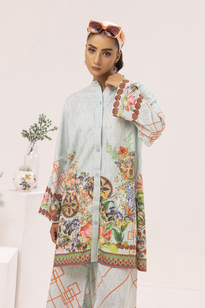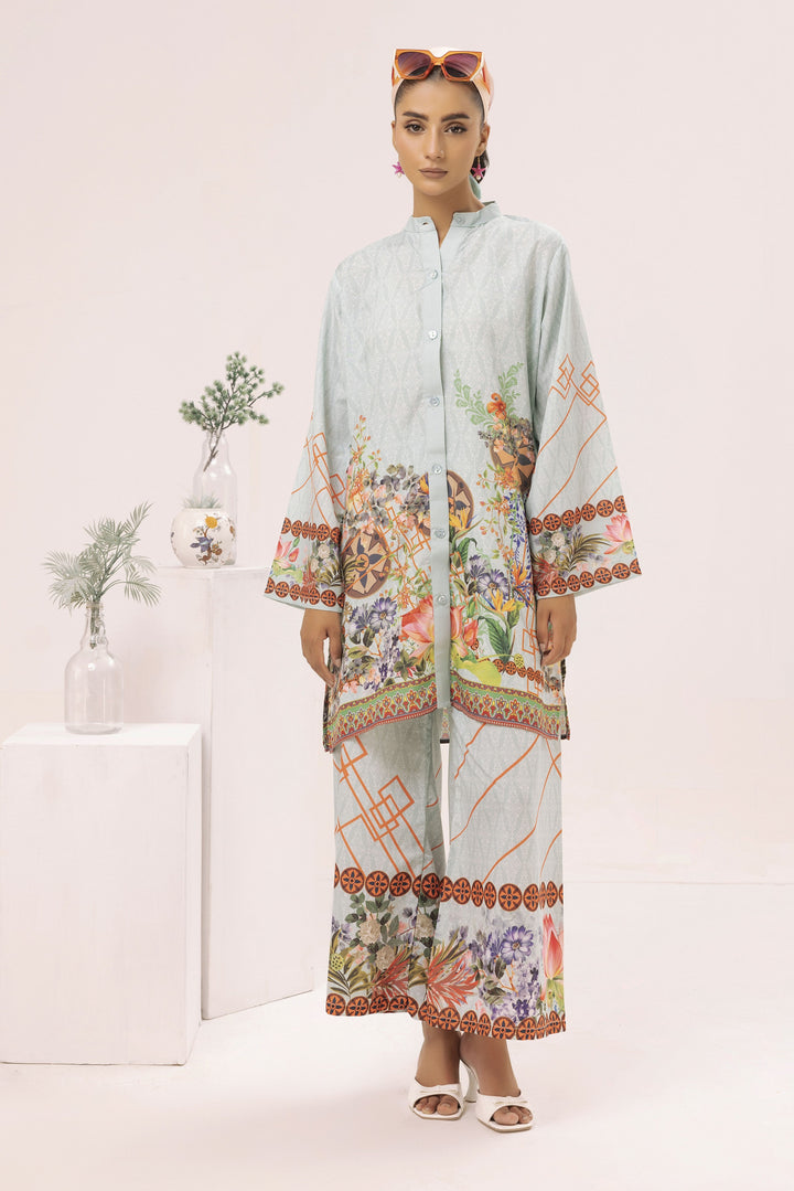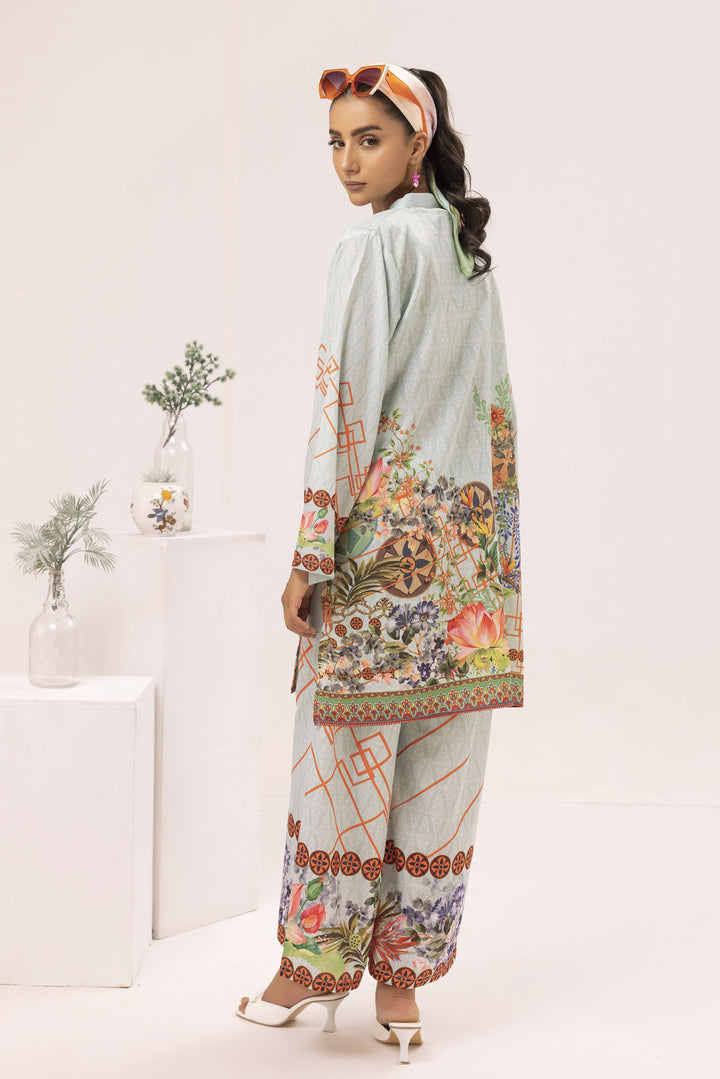 Embrace elegance with Serene Meadow, a beautifully crafted 2-piece stitched ensemble that exudes freshness and charm. The soft pastel base is adorned with delicate geometric and floral patterns, creating a visually captivating design inspired by nature. Vibrant botanical prints along the hem add a lively touch, while intricate detailing on the sleeves and borders enhances its timeless appeal.