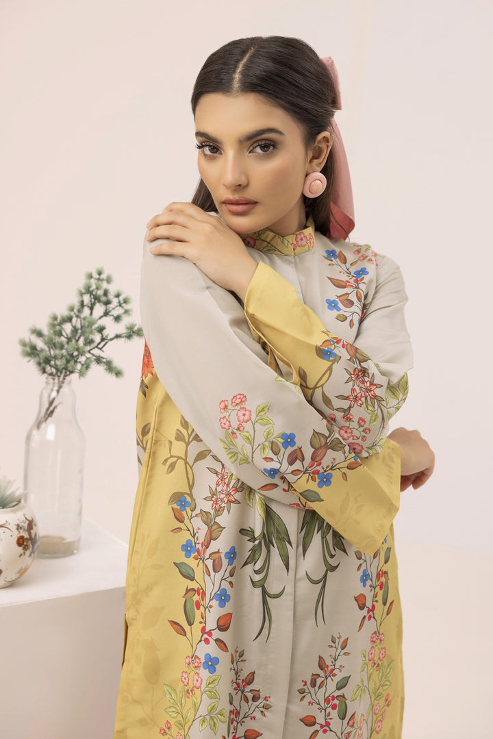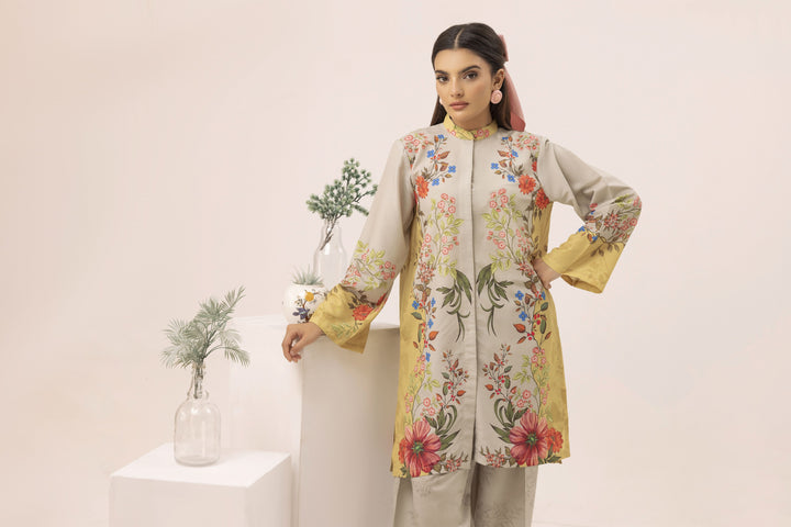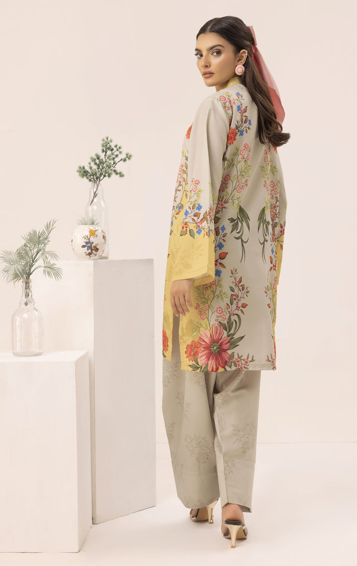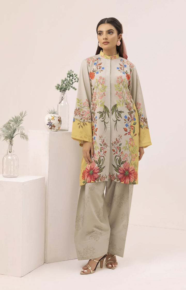 Embrace the freshness of spring with Spring Bloom, a delightful 2-piece stitched ensemble that radiates elegance and charm. This outfit features a soft ivory base adorned with vibrant floral prints in shades of pink, green, and yellow, adding a refreshing touch to your wardrobe. The delicate yellow border detailing enhances its grace, making it a perfect pick for daytime events, garden parties, or festive occasions.